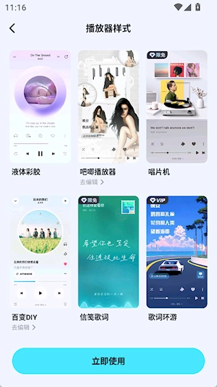 1、多样播放界面:提供歌词环游、旋转封面、唱片机模式等多种视觉风格,让每次听歌都有不同感受。