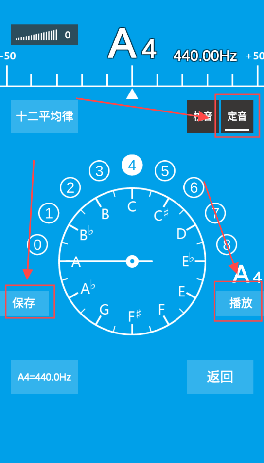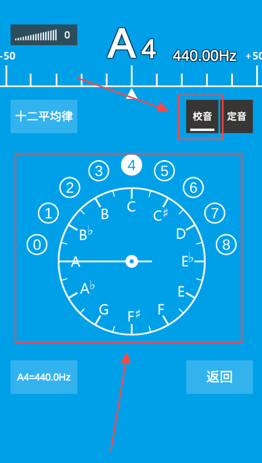 2、全面支持十二平均律调音标准体系,用户可自定义调整A4基准频率的参数设置。