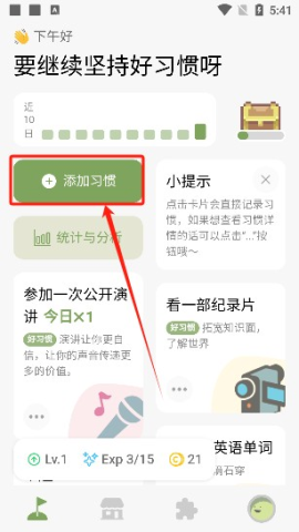 1这款融入趣味游戏机制的习惯养成工具,支持用户自由设计专属习惯标识,并能灵活规划个性化的成长方向与进阶任务。