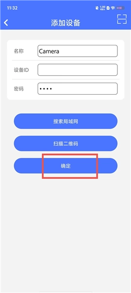 第三步,输入设备名称,id,密码,点击确定即可添加设备。
