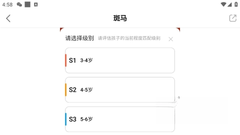 3、选择级别后系统推荐适合的体验内容。