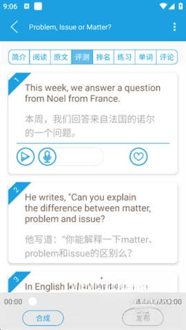 3、自主研发的智能语音评测系统,助您让新闻英语说得更加流畅。