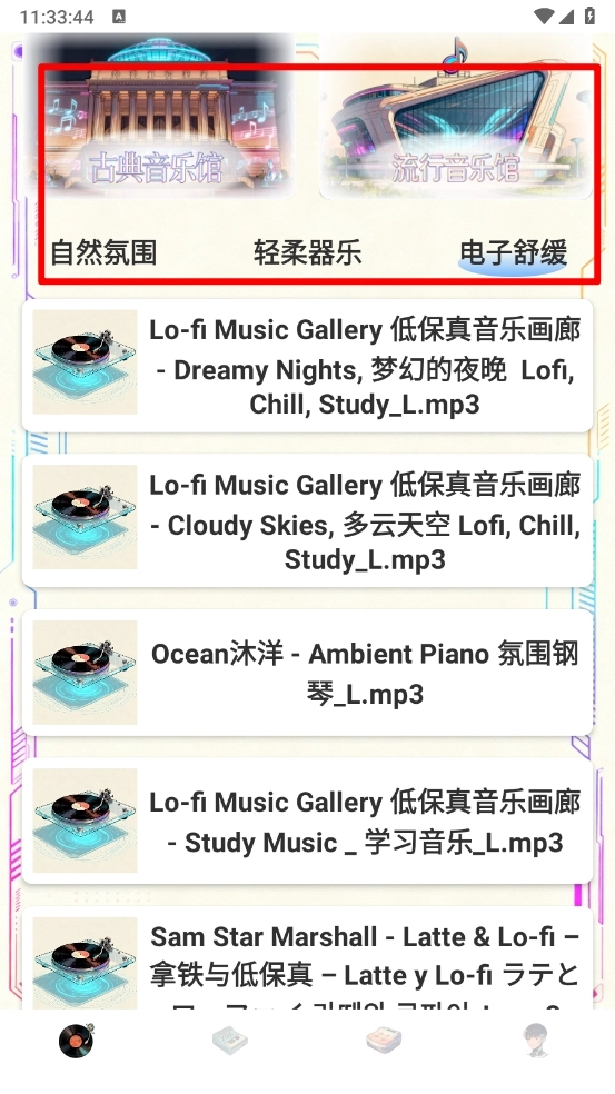1、用户可以体验自然氛围与轻柔器乐结合的音乐,放松身心,适合冥想和专注等场景。