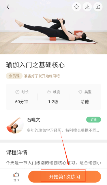 2选择想要进行练习的课程卡片并点击,进入对应的课程界面后,找到底部的“开始练习”按钮,点击该按钮就能进入播放器开始练习操作。