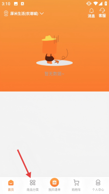 1、在首页,点击底部导航栏的【商品分类】选项,进入商品分类页面。
