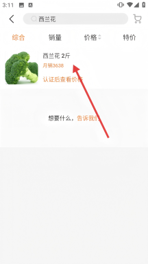3在搜索结果里找到标注“西兰花2斤”的商品选项,点击该选项即可跳转至商品详情页。