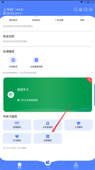 3、接着找到厦门市民卡的社保服务板块,点击社保卡激活选项,即可完成绑定激活操作。