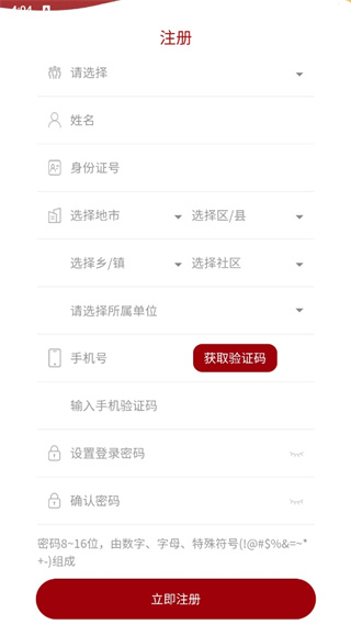 3、最后点击该按钮,进入我的页面,填写好相关信息后,点击【立即注册】按钮即可完成操作。