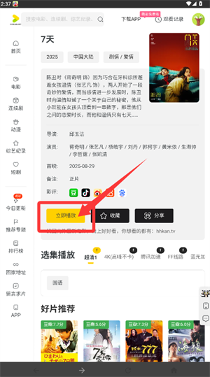 3、进入影片详情页面后,点击“立即播放”按钮即可开始观看内容。