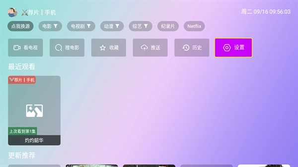 2、进入OK影院之后,点击主页的“设置”按钮。