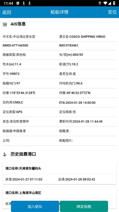 3、输入船名或MMSI,然后选择需要绑定的船;