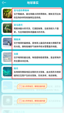 1打开启蒙百科知识大全应用后,主界面下方会呈现不同类型的知识板块,找到“地球事实”相关内容区域,点击对应的展开选项即可。