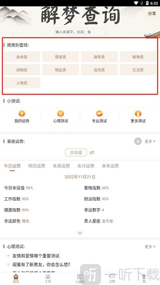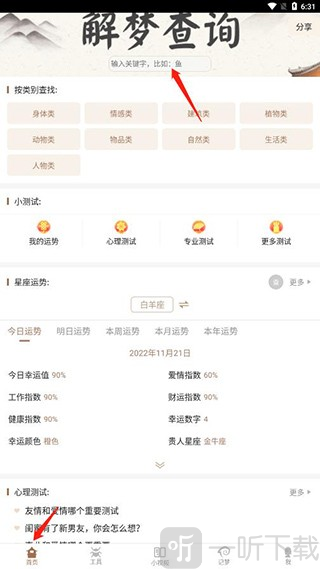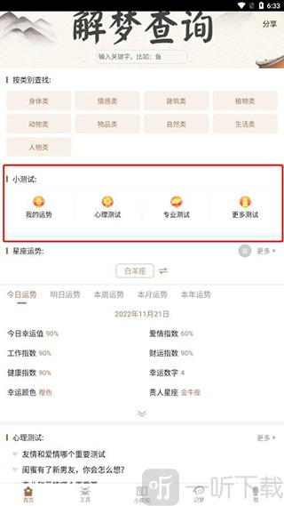 5. 这里还设有运势、心理测试、专业测试等多种测试类玩法。