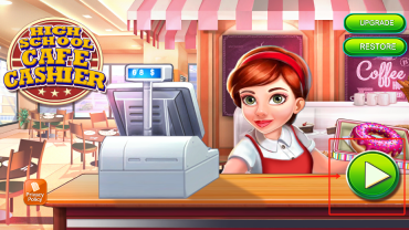 1点击那个绿色的播放按钮就能开启游戏啦,你要操控那个红发的女孩,让她扮演收银员的角色,通过售卖咖啡和甜甜圈来赚取游戏里的货币。