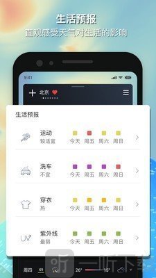 1. 带有图文展示的移动天气预报应用,能提供精准的天气资讯,让你便捷查看温度、湿度、空气质量、风速等各类信息;