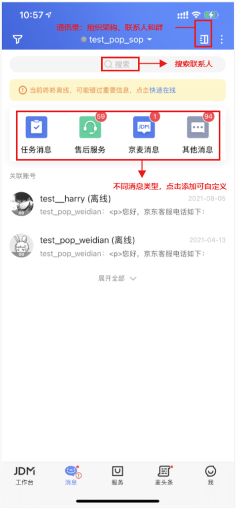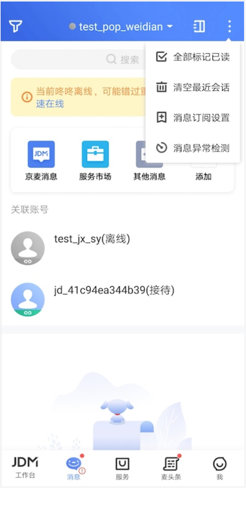 咚咚消息是商家和客户高效沟通的平台,您可以点击京麦里的“咚咚”进入该功能界面。