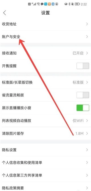 3、接着点击账户与安全,如图所示;