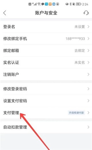 4、接着再点击支付管理,即可进入设置;