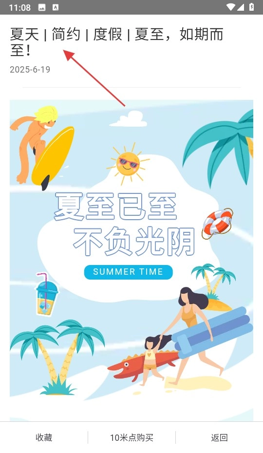 3、查看选中模板“夏天|简约|度假|夏至,如期而至!”的内容。