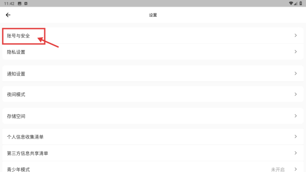3进入设置页面后,找到并点击“账号与安全”相关选项,即可跳转至对应的功能界面。
