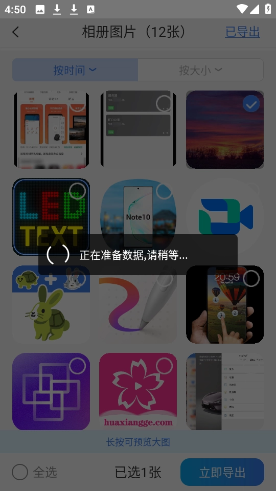 5、导出操作完成之后,直接点击“导出到相册”即可,长按预览大图之后,可以分享。