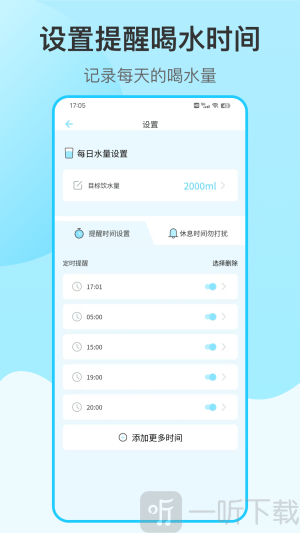 1. 每天会定期提醒你及时补水,你还能自行设置提醒频率,像15分钟一次、30分钟一次都可以。