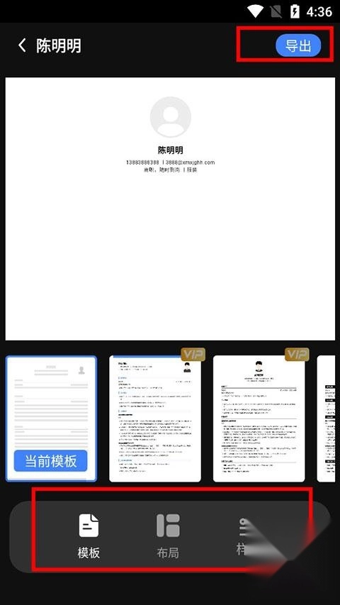 7、挑选好适配自身的模板、布局与样式后,点击导出按钮。