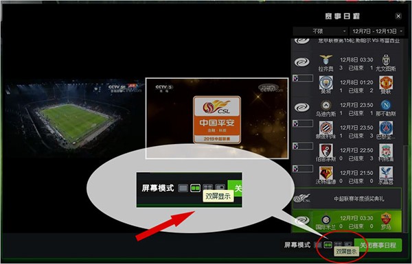 可同时播放两场赛事视频,适用于同时播放两场半决赛赛事的场景。