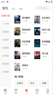 3分类板块对各类小说做了细致划分,涵盖言情、悬疑、武侠等不同题材。