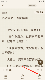 1打开你感兴趣的小说,进入阅读界面后轻点屏幕任意区域,随后找到并点击设置选项。