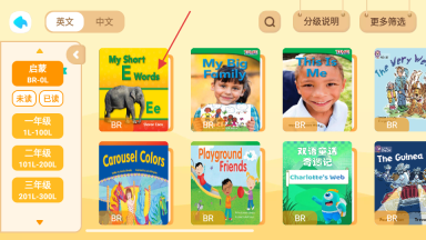 2进入分级阅读专区后,可依据系统推荐的适配等级或自身偏好,在故事、科普等不同类型里选定感兴趣的英文读物,点击读物就能开启在线阅读体验。