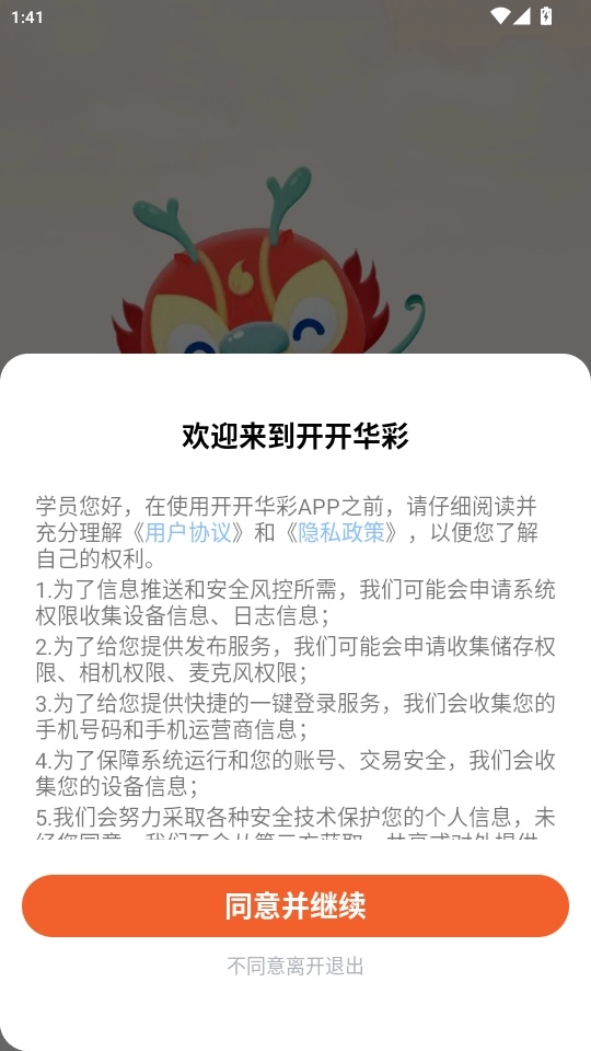 1. 启动软件后阅读“用户协议和隐私政策”,点击“同意并继续”按钮进入下一步。