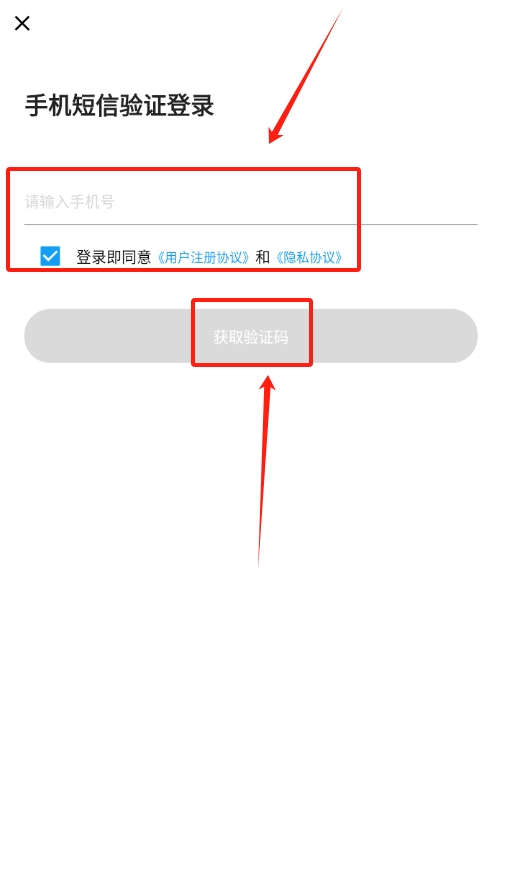 2、打开软件进入首页,找到手机号输入框,准确输入自己的手机号码,输入完成后点击旁边的“获取验证码”按钮。