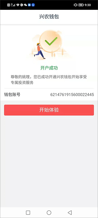 5、申领成功后,点击“开始体验”按钮,就能使用“兴农e钱包”完成交易支付操作了。