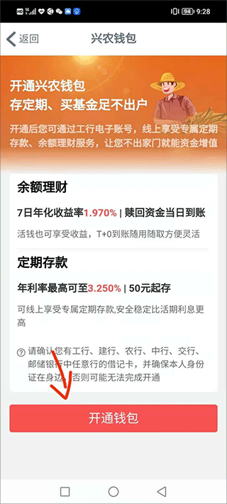 2、进入新页面中点击“开通钱包”,进入申领流程