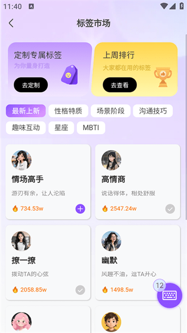 个性化标签定制服务:允许用户自行添加MBTI类型、星座信息、性格特质等各类标签,系统会依据这些标签为用户量身打造专属的聊天策略。