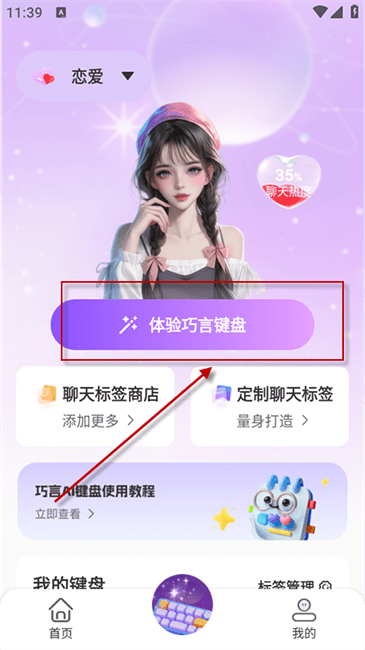 3、激活键盘功能,点击“体验巧言键盘”选项,按照指引进入手机的“输入法管理”界面,开启“巧言AI”输入法的使用权限。