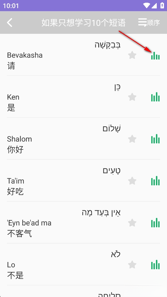 点击词语后方的绿色按钮就能播放语音,你可以跟着朗读来学习。