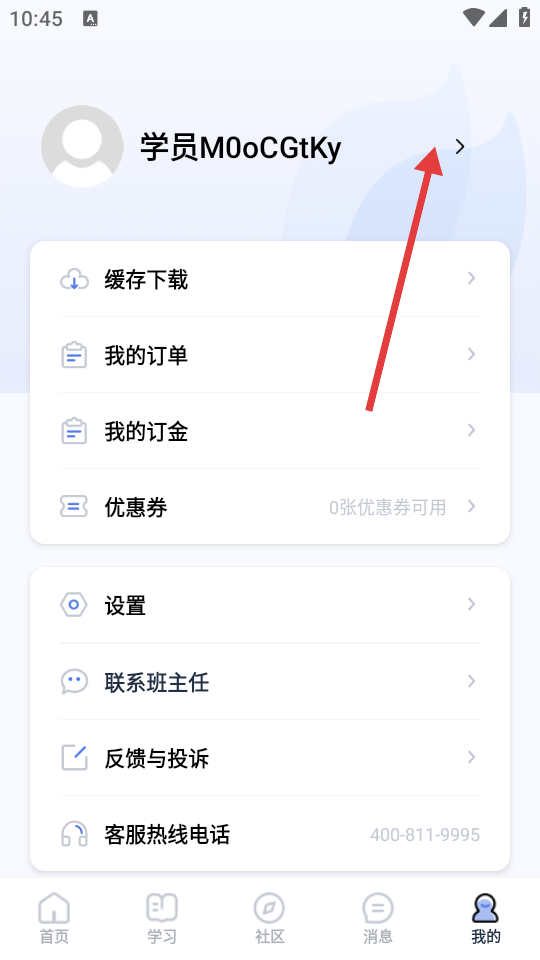 2进入个人中心后,找到用户名旁边的箭头标识并点击,即可跳转至个人信息界面。