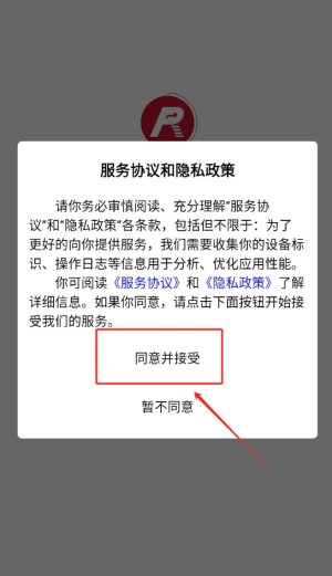 1、首先勾选同意选项进入应用界面,需确认接受相关服务条款与隐私政策,这样才能顺利使用软件。