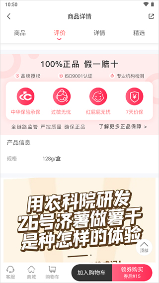 3、正品保障承诺页面中有更加详情的介绍的