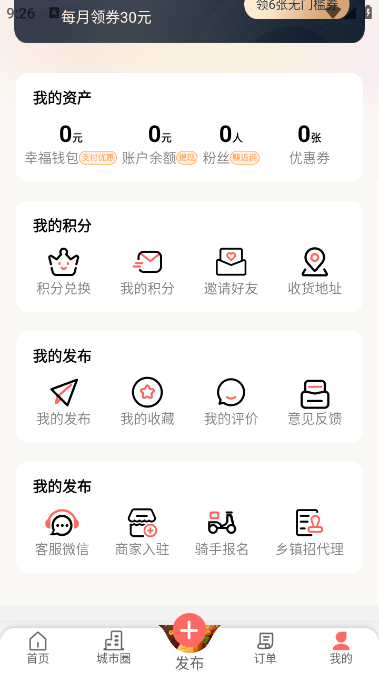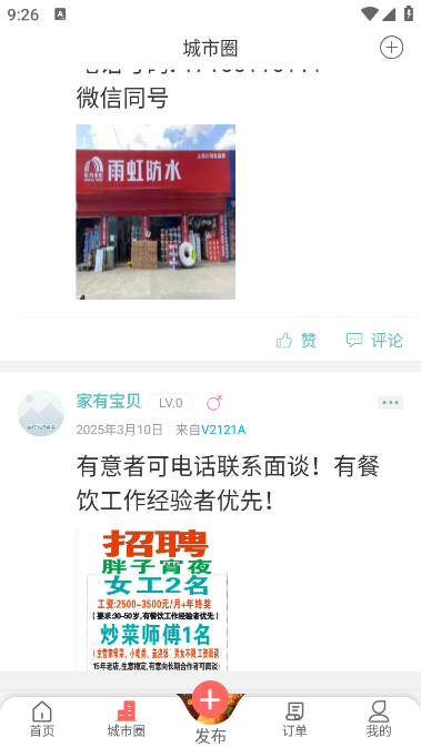 3、点击城市圈,右上角发布按钮,可以自行发布内容