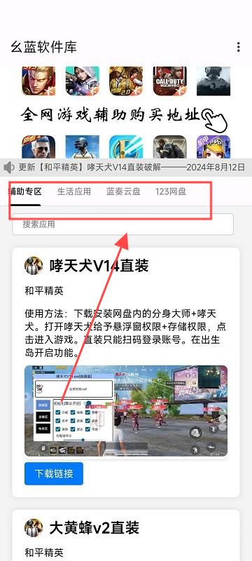 3用户可以自主访问生活服务类应用,以及像蓝奏云盘、辅助专区这类平台,去搜索和获取所需的各类资源。