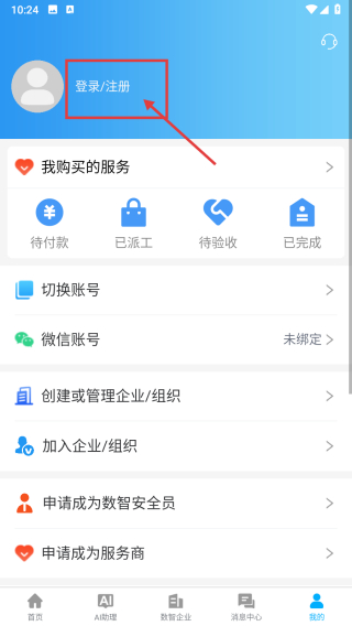 1、进入应急安全服务类应用,点击底部导航栏的“我的”选项,即可进入个人中心页面。