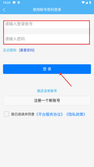 4在登录界面依次填写账号信息与密码,确认同意相关服务条款后,点击登录功能按钮,即可完成账号的登录流程。