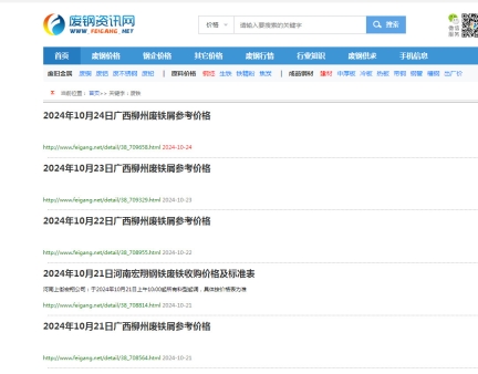 废钢网涵盖废钢、汽车拆解料、工地废钢、铸造废钢、国际废钢、冶金渣、废有色金属等多样类目,每日更新超千条资讯,包含价格