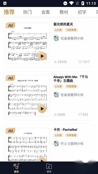 【大众音乐学习交流】在音乐理解的过程中,您既能够把自己的乐谱分享给其他用户,也可以借助其他用户分享的音乐资源,共同开展学习与交流活动。