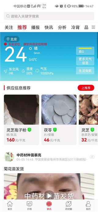 这里有一个修改后的版本: 在这个中药材人的专属综合服务平台上,首页全天候不间断地更新着市场动态、产地消息、政策解读以及种植技术等内容。用户可以在这里便捷地发现志同道合的社群,分享动态、交流专业知识、发布见解,共同构建和经营自己的专业社交圈。