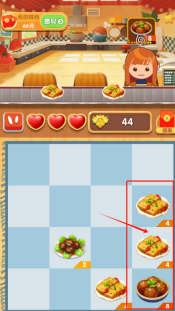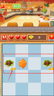 2找到箭头形状的道具,将其拖动到那两个标有数字“2”的菜品托盘之间,然后点击领取奖励的按钮即可获取对应的奖励。