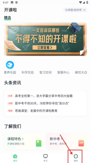 1、打开教育类首页,点击底部的“我的”选项,进入个人中心页面。